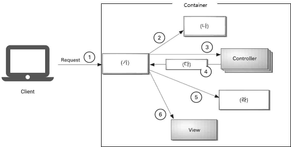 45. 다음은 스프링 MVC의 구조를 나타낸다. (가)~(라)에 해당하는 가장 적절한 것은?